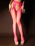 Чулки сделаны из сетки. Плотный пояс подчеркивает талию и оставляет открытыми ягодицы. Чулки плотно облегают тело. Декорированы стразами.