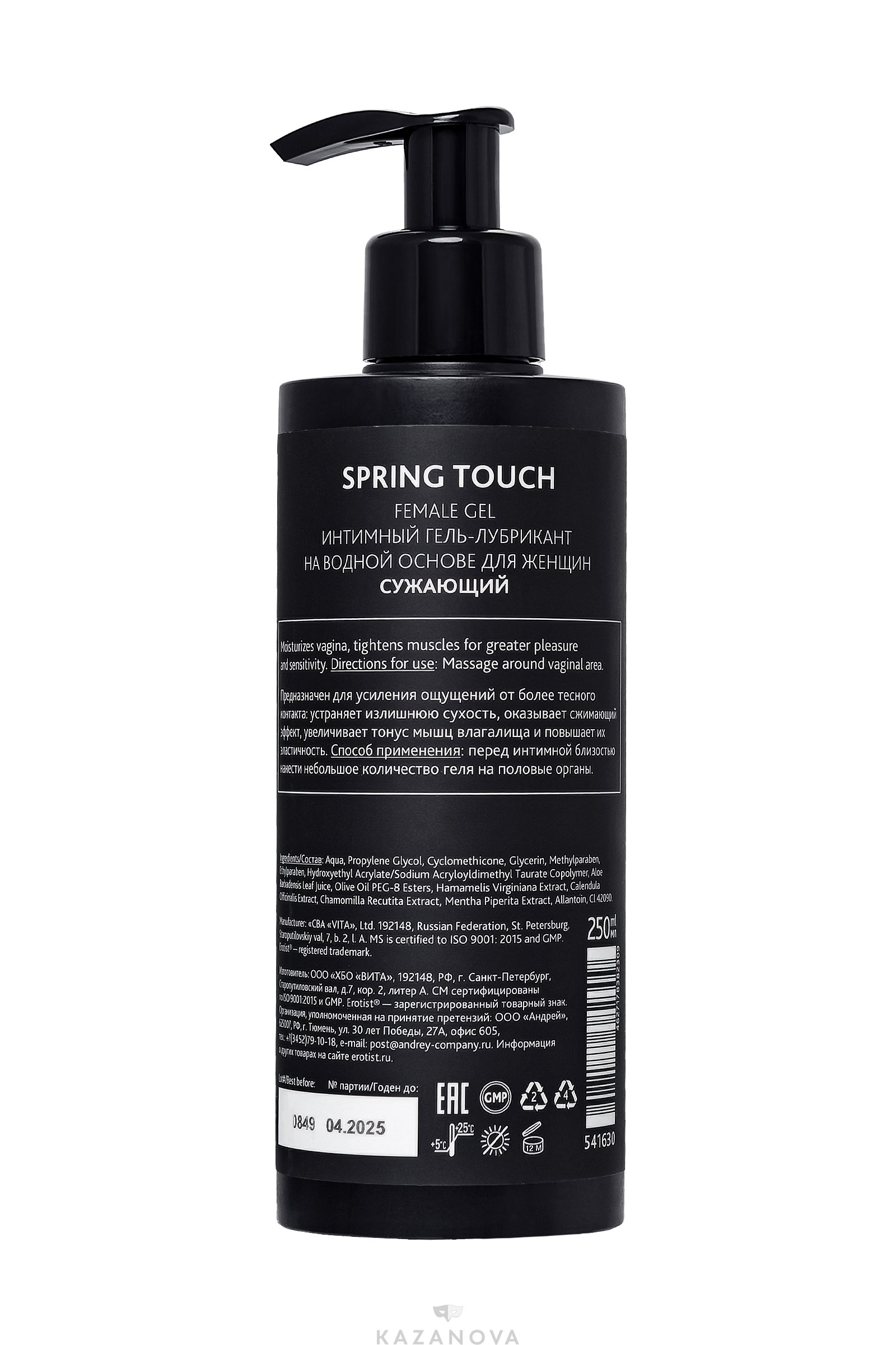 Концентрация геля дарит шелковистое скольжение. Но самое главное — Erotist Spring Touch обладает сжимающим эффектом, который увеличивает тонус мышц влагалища.