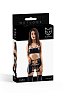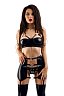 Этот соблазнительный комплект включает в себя все, что нужно для создания захватывающего образа: сексуальный топ, откровенную юбку-пояс с пажами для чулок и соблазнительные трусики-стринги.