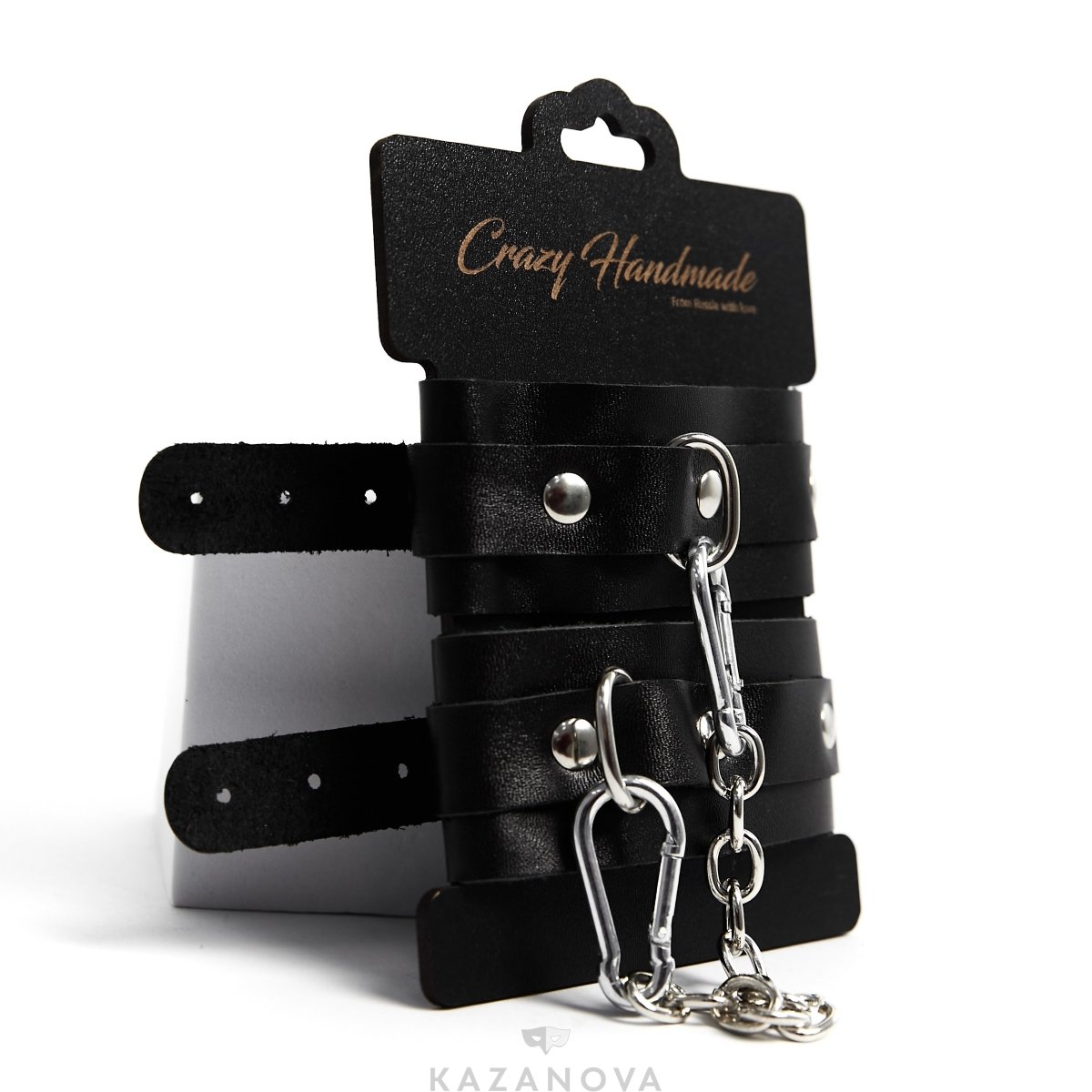 Наручи Crazy Handmade однослойные из натуральной кожи чёрные