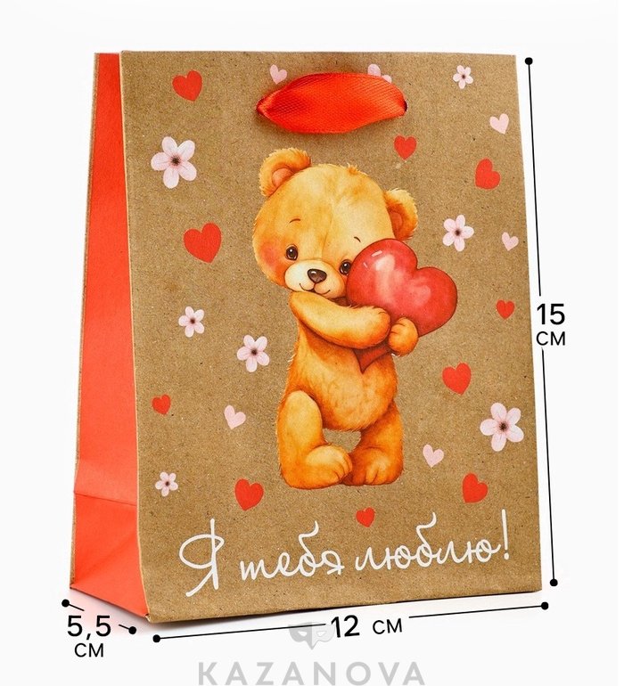 Пакет подарочный "Я тебя люблю!" 12*5.5*15 см