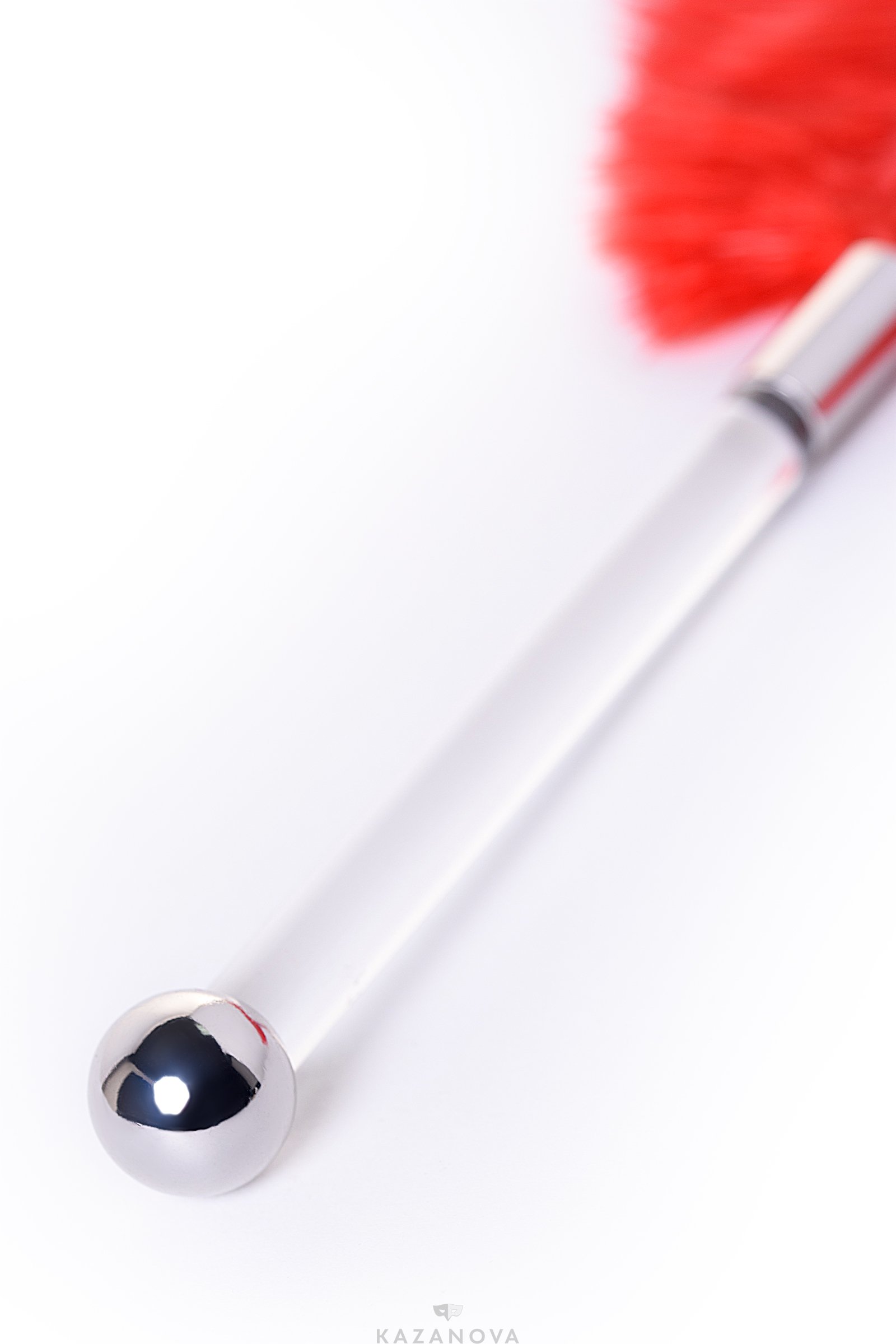 Щекоталка из натурального страусиного пера с пластиковой ручкой.