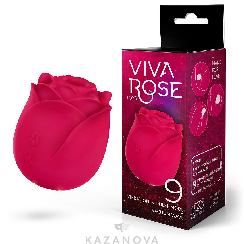 Вибростимулятор вакуумно-волновой Viva Rose в форме розы 9 режимов бордовый